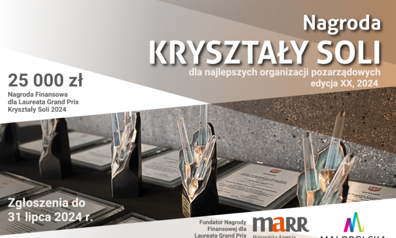 Organizacje pozarządowe➡ na co dzień pomagają innym, działają w różnych obszarach, inspirują do działania, realizują ciekawe inicjatywy i ważne projekty oraz zmieniają swoje najbliższe otoczenie. To już XX edycja Konkursu dla najlepszych organizacji pozarządowych Kryształy Soli 2024, która przyznawana jest przez Województwo Małopolskie. Do 31 lipca trwa nabór zgłoszeń do tegorocznej Nagrody. Organizacja najlepsza z najlepszych – Laureat Grand Prix Kryształy Soli 2024 otrzyma nagrodę finansową – 25 tys. zł.
