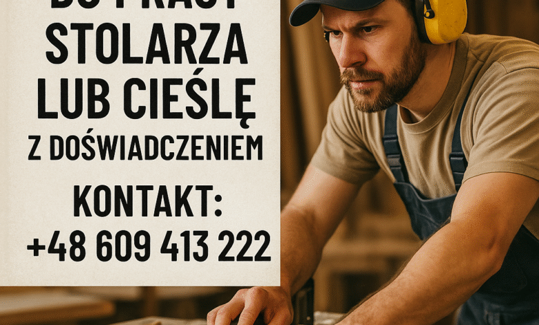 Zatrudnię do pracy stolarza lub cieślę z doświadczeniem. Praca w Bochni. Kontakt: +48 609413222