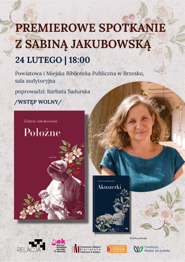 Powiatowa i Miejska Biblioteka Publiczna w Brzesku, Wydawnictwo Relacja oraz Miejski Ośrodek Kultury w Brzesku zapraszają na (pra)premierowe spotkanie autorskie z Sabina Jakubowska wokół powieści „Położne”. Kontynuacja bestsellerowych „Akuszerek” Sabiny Jakubowskiej przenosi czytelników do okupowanego Krakowa i odsłania poruszające historie porodów, moralnych wyborów oraz kobiecej solidarności w czasach wojny. „Położne” to opowieść o godności i sile wsparcia, które w najtrudniejszych momentach decydują o człowieczeństwie.