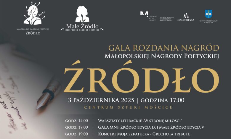 W piątek, 3 października 2025 roku, Centrum Sztuki Mościce w Tarnowie stanie się przestrzenią wyjątkowego spotkania z poezją i muzyką. CSM oraz Gminny Ośrodek Kultury w Borzęcinie zapraszają na Święto Poezji – wydarzenie podsumowujące dwa ogólnopolskie konkursy: IX edycję Małopolskiej Nagrody Poetyckiej „ŹRÓDŁO” oraz V edycję konkursu „Małe Źródło”. Do organizatorów dotarło ponad 250 zestawów konkursowych, zawierających blisko 1000 wierszy – to dowód na niesłabnącą siłę słowa i potrzebę dzielenia się poetycką wrażliwością. Zaproszenie kierowane jest zarówno do uczestników tegorocznych edycji, jak i do wszystkich, którzy chcą stać się częścią tego wyjątkowego święta literatury.