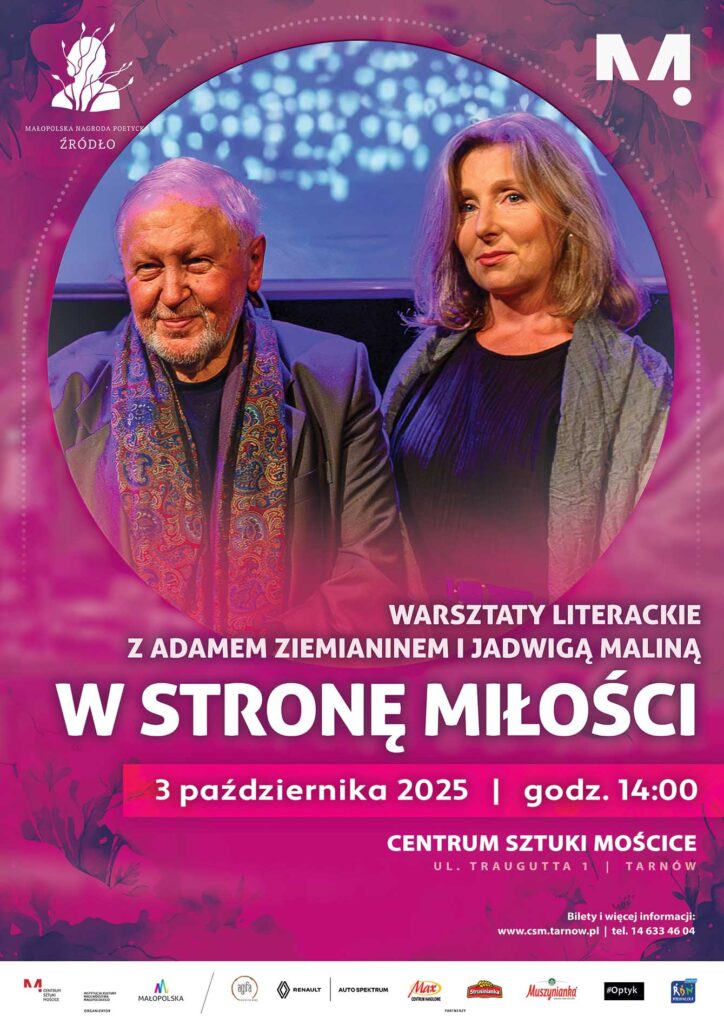Program rozpocznie się o godz. 14:00 warsztatami literackimi pt. „W stronę miłości”, prowadzonymi przez uznanych poetów – Adama Ziemianina i Jadwigę Malinę. Uczestnicy będą mieli okazję wspólnie tworzyć teksty, rozmawiać o roli poezji w budowaniu relacji i odkrywać świat emocji zapisanych w słowie.